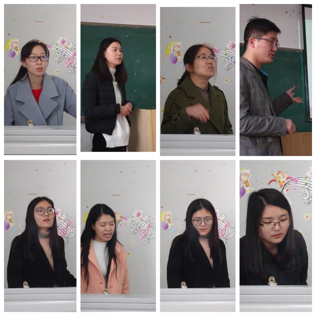 由张琦、龚雨轩、王碧梅、李运福、王笑圆、康米、王卓、权思翔、朱昭九位老师依次就本学期承担的课程进行展示。九位老师分别从学生特点、课程性质、教材选择、教学过程、教法分析、考核方式等模块进行了深入地阐述。各位听课教师对课堂内容的多元化、教学考核多样化进行了探讨,并提出了宝贵意见。