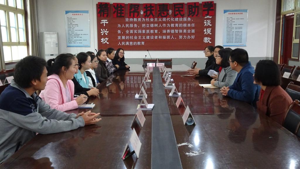 一行人先后到了2015级初等教育专业实习点户县太平学校,这是一所户县唯一的九年制寄宿学校,具有独特实习体验意义,之后,拜访了校园宽敞的石井初级中学,2014级心理学本科学生在此学习,都受到了学校领导与同学们的热情接待,看到经过近两个学习锻炼的同学们精神抖擞、意气风发,感到十分高兴。在座谈上,肖新副书记首先感谢了学校对我院实习工作的大力支持,感谢对教育的无私奉献精神和强烈的社会责任心,对老师们的倾囊传授和信任鼓励表示诚挚感谢,对高质量完成实习任务提出针对性意见。十九大召开在即,这是全国政治生活中的头等大事,要切实维护实习期间的稳定安全,要求学生中的党员、入党积极分子起到先锋模范作用,作好表率,带头遵守实习学校的纪律,自觉加强思想政治教育,积极投入到丰富多彩的实习生活中去,乐于接受各种挑战,积极实践,不断总结反思,努力取得实实在在的进步。副院长吕银芳、副书记苏群老师与实习生进行了亲切的互动交流,希望同学们积极转变角色,投身教学和管理工作,在教学实践中发挥潜力,发现问题,不断提升个人的实践能力和水平,使实习生活成为人生一段难忘的记忆。
