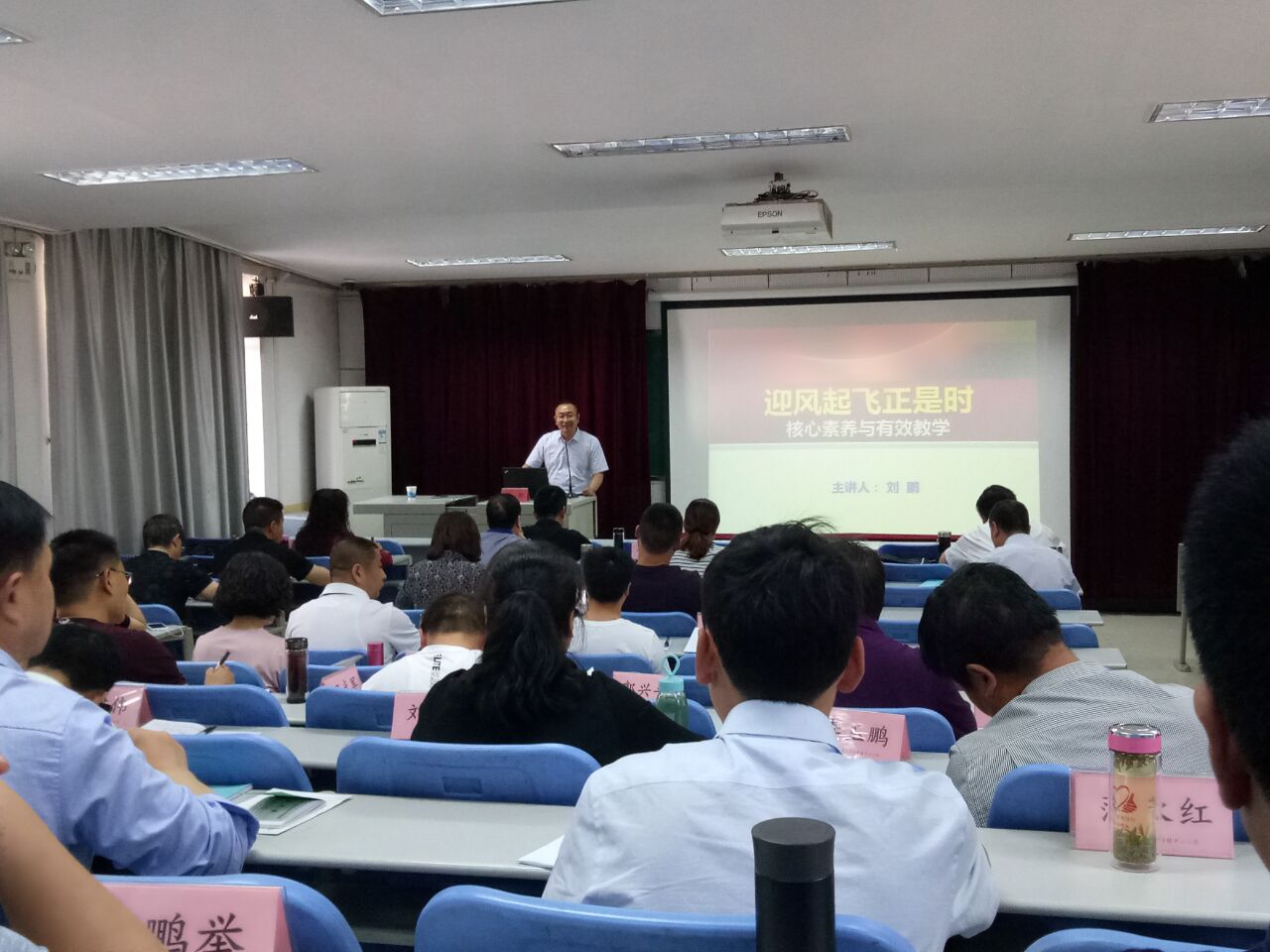 2017年5月12日下午,刘鹏校长以“核心素养与有效教学”为题和大家分享他的教育教学理念。刘鹏校长首先强调核心素养在教育改革当中的主要功能和重要意义,中国学生发展核心素养是以一个全面发展的人为核心,充分表现在“文化基础”“自主发展”和“社会参与”三个维度,校长必须给予高度重视并及时落实在自己的学校管理实践中。刘校长结合自己多年的教育教学经验就“人文底蕴”“科学精神”“健康生活”“学会学习”“自主规划”“责任担当”六个方面进行了生动、有趣的解释,与案例分析;其次刘校长基于核心素养的而有效教学指出 “智力基础”“动力系统” “学习方法” 是学生学习成绩的三要素,校长要在严格管理、全程监控、态度诚恳三个方面想办法调动教师的教学积极性,只有让老师跳入题海,才能帮助学生跳出题海,提高教育教学质量是每一位教师和学校永恒的追求。