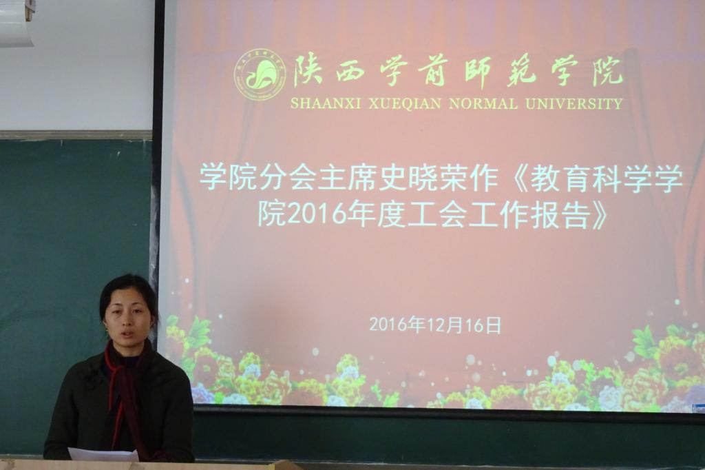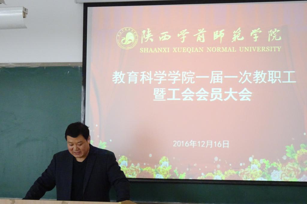 根据学校指示,为提高广大教职工参与学院民主管理、行使民主权利、进行民主监督的积极性、主动性,真正发挥主人翁精神,促进学院科学发展,在校工会关心指导下,经过学院领导班子研究部署、学院分会精心筹备、各相关人员认真落实,教育科学学院一届一次教职工暨工会会员大会于2016年12月16日下午胜利召开。校长王志刚、校工会主席赵新峰受邀莅临会议,教育科学学院领导班子、教职工25人参加会议。会议由总支副书记肖新主持。