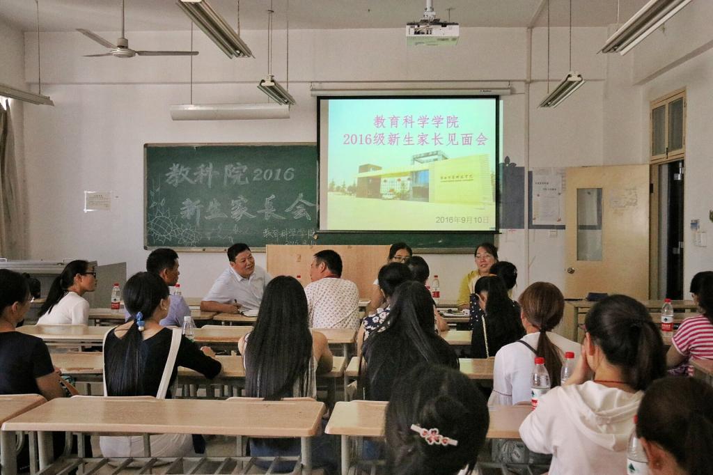 为了加强学校与学生家长的联系,增进感情,使新生家长全方位了解学校的办学实力,听取家长们的意见和期待,形成家校合力,共同培养好学生,教育科学学院于2016年9月10日下午3点在1教C403教室举办2016级新生家长见面会。教育科学学院党总支书记、副院长、副书记参加了本次见面会,有十多名家长代表到会座谈。