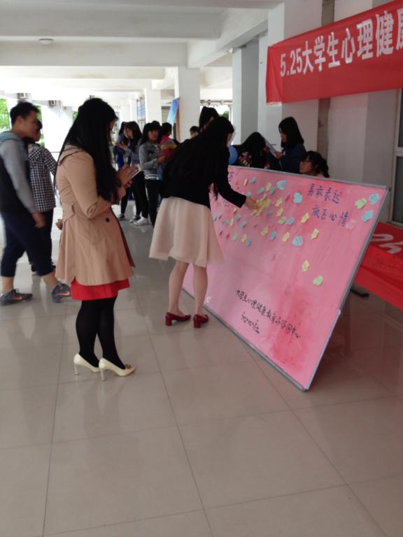 5月25日全天教育科学学院心理学教师、沁心社联合学工部在学校一号教学楼与食堂同时举办的一年一度5.25大学生心理健康日活动。