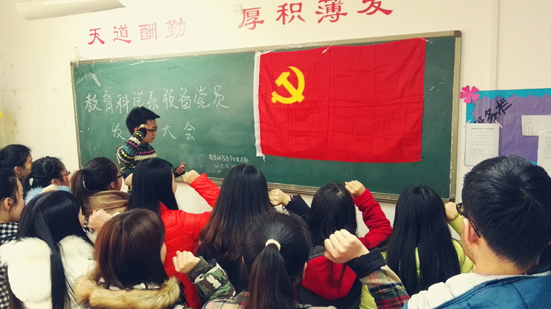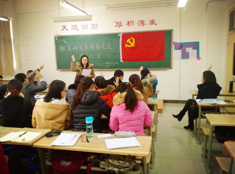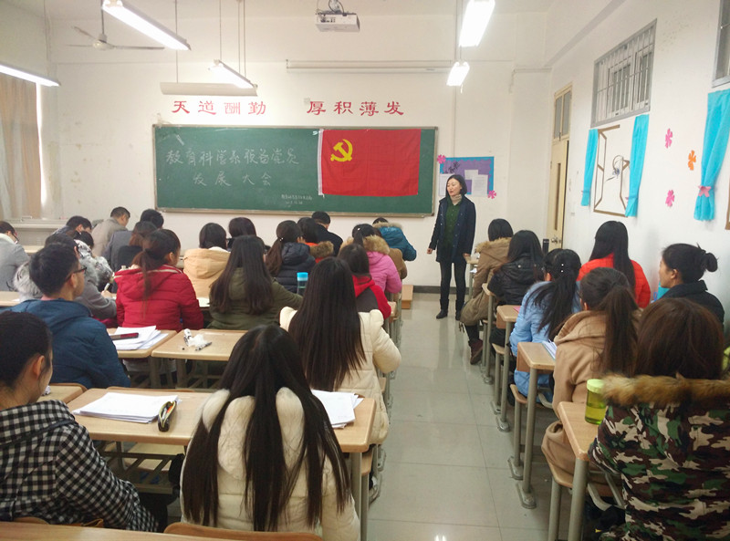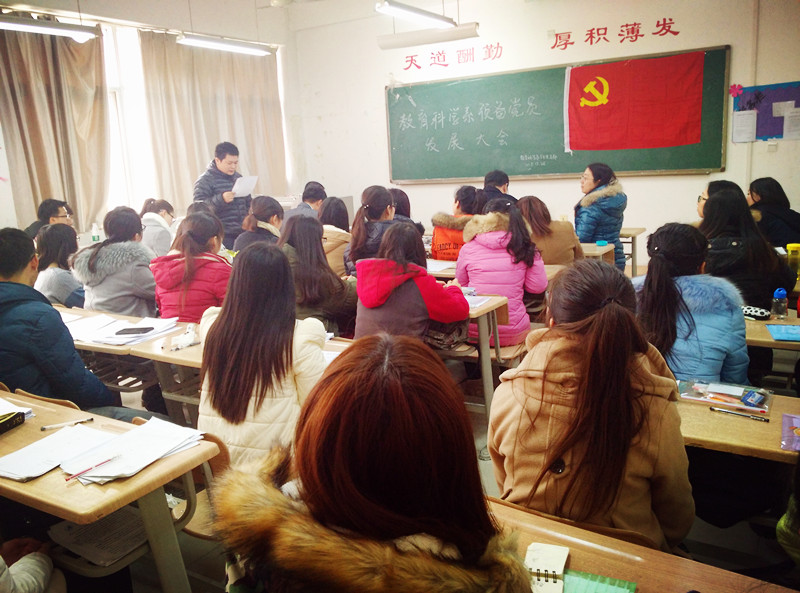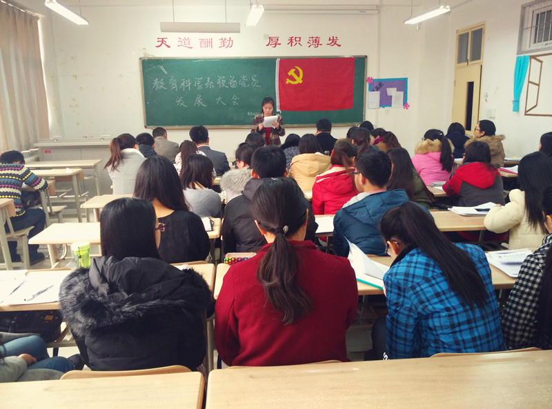 2015年12月28日12点50分,教育科学系学生党支部在1教C303教室召开预备党员发展大会,支部大会应到正式党员11人,实到10人。大会讨论了关于徐川等19名同志的入党情况,由系学生党支部书记周姗主持会议。