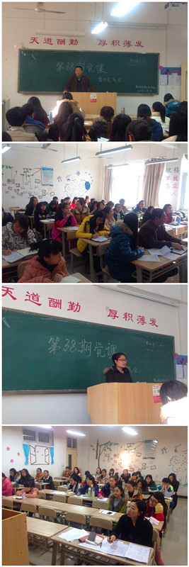 为响应党委组织部号召,加强党校培训班同学的党性修养, 2015年12月15日—12月16日教科系学生党支部在1教C303教室进行了以:“对照党章,自己应从哪些方面达到党员标准”为主题的第38期党课学习交流会。参与此次会议的有教科系党总支书记杨锡强同志、党总支副书记吕银芳同志、学生党支部书记周姗同志、参加第38期党课培训的23名学员和15名预备党员。