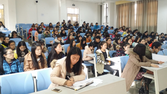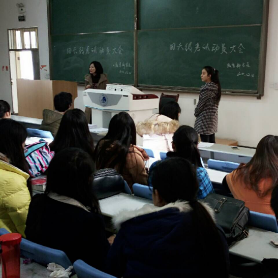 2015年12月16日12点,教育科学系在1号教学楼C1教室为2013和2014级心理学本科专业共计158名同学召开了四、六级考前动员大会。会议由辅导员王晓萍主持,13级心理学1班李艺同学就四、六级考试中需要注意的事项进行说明,对考试过程中每一部分答题方法也提出了一些很好的建议。