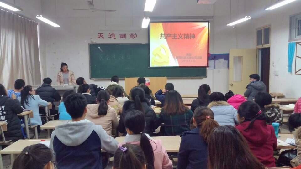 2015年12月10日中午1点,我系学生党支部在一教C303教室组织民主生活会,开展了一场关于"共产主义精神"的学习和讨论。教科系全体党员、积极分子参会。