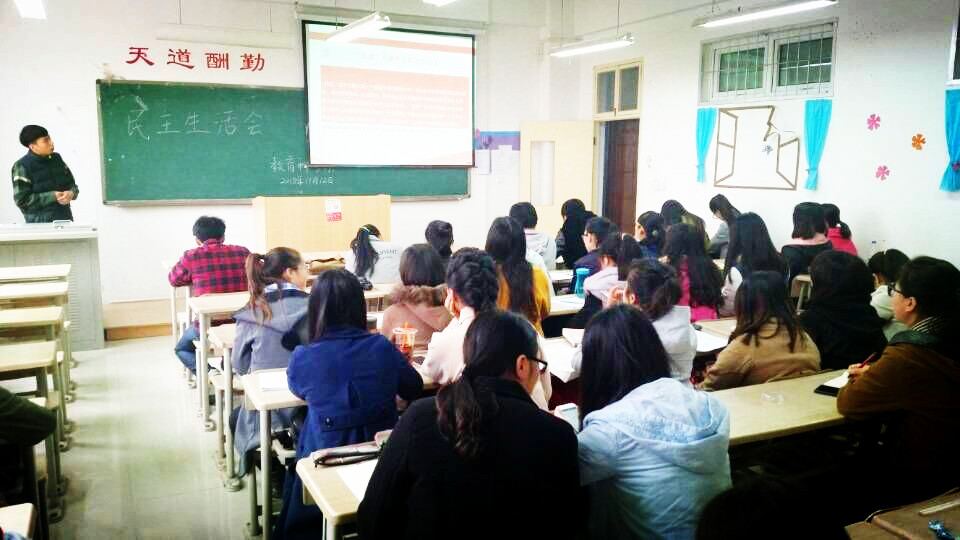教育科学系学生党支部于2015年11月12日中午1点在1教C303教室开展了关于“四进四信”的学习,宣传了“四进四信”的思想精神。全系党员和入党积极分子参加本次学习。系学生党支部副书记安嘉乐同志主持并主讲本次学习。