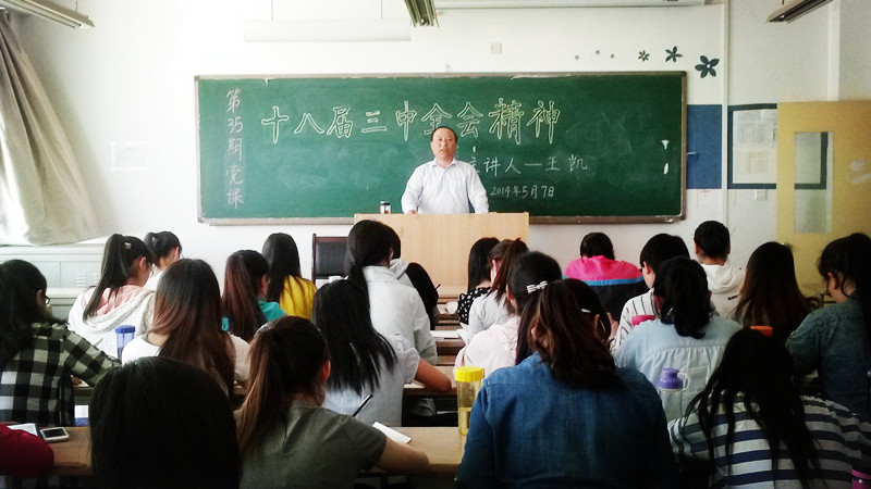 2014年5月7日下午,学院纪委王凯书记和党委栾高明副书记为教育科学系第35期党课培训班40名入党积极分子和部分教师授课。