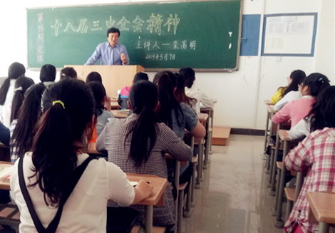 党委副书记紧紧围绕党的十八届三中全会精神和习近平总书记的系列讲话精神进行深入阐释,通过大量举证,深入剖析我国现阶段全面深化体制改革的深刻内涵及社会主义核心价值观,强调我党自建立以来为建设中国特色社会主义国家所作出的不懈努力,鼓励同学们要充满对党的向往之情。