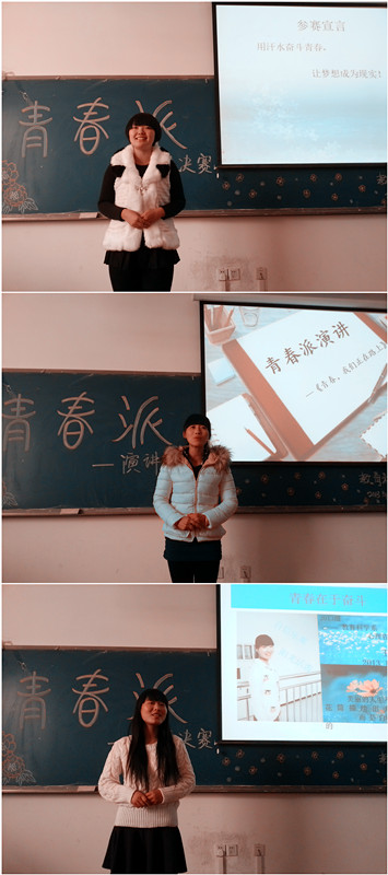 2013年 12月11日下午14:30分,我系 “青春派”主题演讲比赛决赛在一教C303教室举行,全体辅导员老师担任比赛评委。本次活动从2013年11月20日从开展班级预选赛以来,历时四周。主要目的是为了营造浓厚的学习文化氛围,为同学们展现自我提供多彩的平台,促进我系学生能力的全面发展,敦促学生珍惜青春,努力拼搏。
