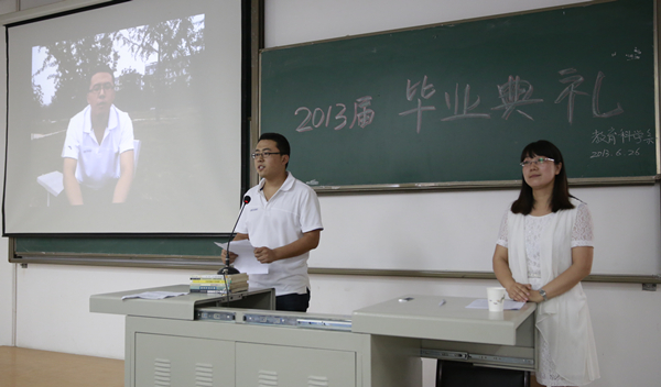 典礼期间西部支援生代表发、专升本代表作了发言。为低年级的学生提供了良好的学习经验。老师们给即将离校的学生送出真诚寄语及衷心的祝福,系党总支书记给予毕业生们充分的鼓励和真挚的希望。最后教育科学系对西部计划的学生以及专升本成功的学生们颁发奖品以致祝贺。