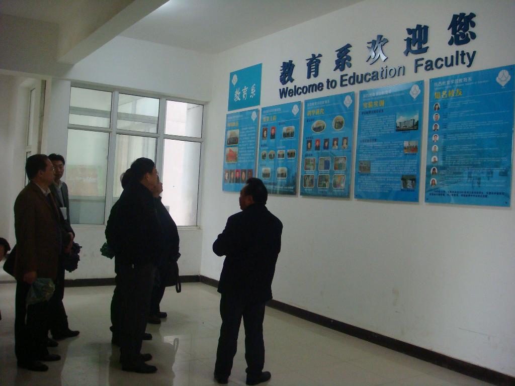 2011年11月29日上午,甘肃联合大学代表团在我院相关部门负责人的陪同下,来到我系进行参观学习,交流经验。刘宏佺副院长、教育系主任何善平教授、教育系党总支副书记姜晓玲老师和院办改制办负责人陪同检查。