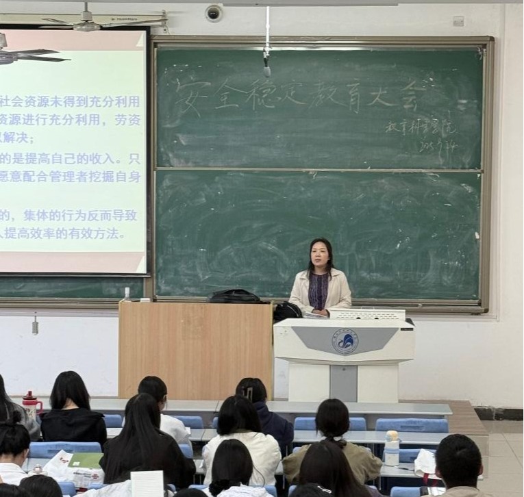 为确保学生正常的教学和生活秩序,维护校园安全稳定,切实抓好学生的教育管理和安全稳定工作,近日,教育科学学院通过学院党委会、辅导员例会、学生干部会、各年级各班主题班会等形式,分批次、全覆盖开展安全稳定专项教育。