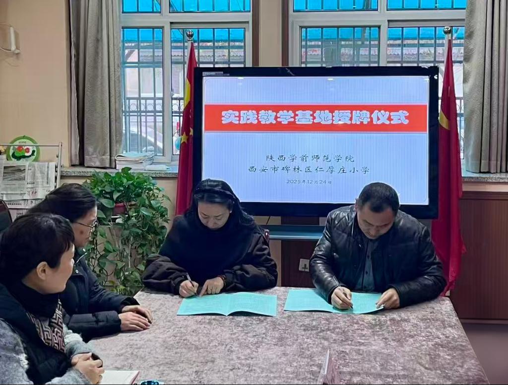12月24日上午,教育科学学院院长江玉印、指导教师史晓荣赴西安市碑林区仁厚庄小学开展拓岗交流,慰问实习生,与对方签订共建实践教学基地协议并授牌,标志着两校在协同育人、资源共建共享的合作道路上迈出了坚实一步。