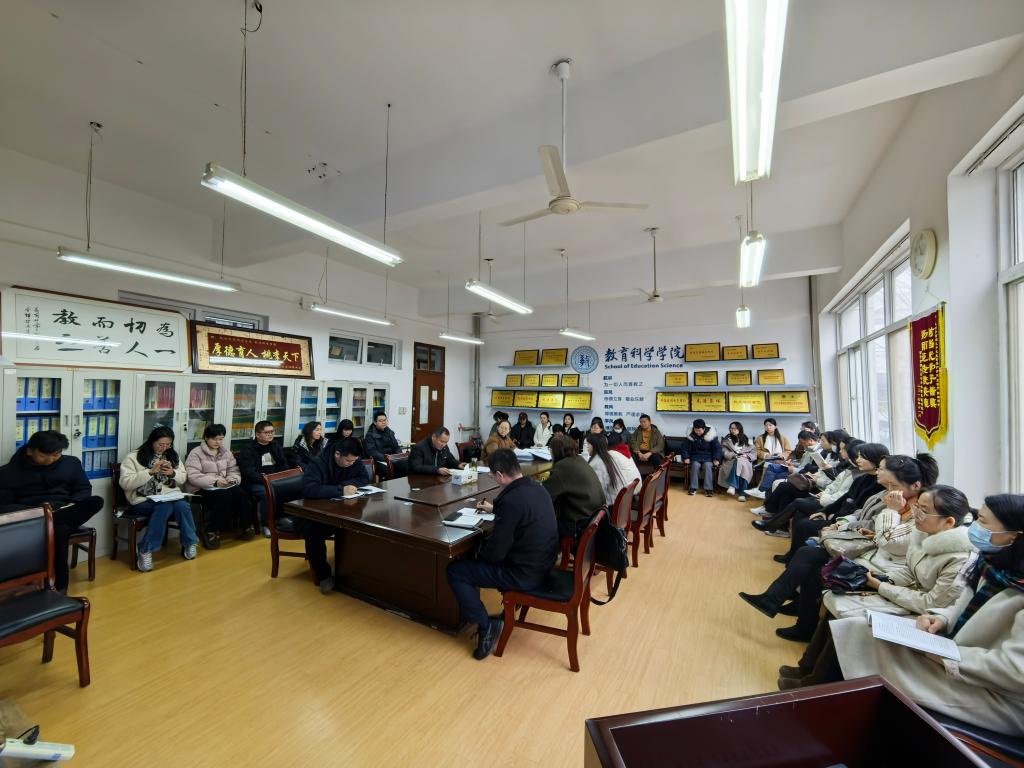 2026年3月1日,教育科学学院在1教A202会议室召开2025-2026学年第二学期开学全体教职工大会,传达学校新学期开学工作会议精神,统筹部署学院期初及2026年重点工作任务。会议由学院党政负责人主持,全体教职工参会。