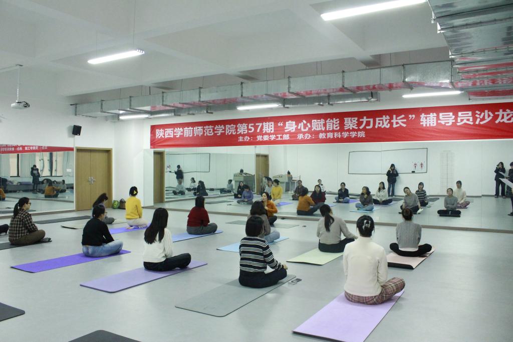 为提升辅导员心理调适能力,让他们以饱满的精神状态投入育人工作,1212下午党委学工部主办,教育科学学院承办的学校第57“身心赋能 聚力成长”瑜伽主题辅导员沙龙在体育馆瑜伽室成功举办。党委学工部教育管理科负责老师,教育科学学院、外国语学院、经济与管理学院、音乐学院党委副书记,专兼职辅导员及学生代表共同参与。教育科学学院党委副书记张晔主持本次活动