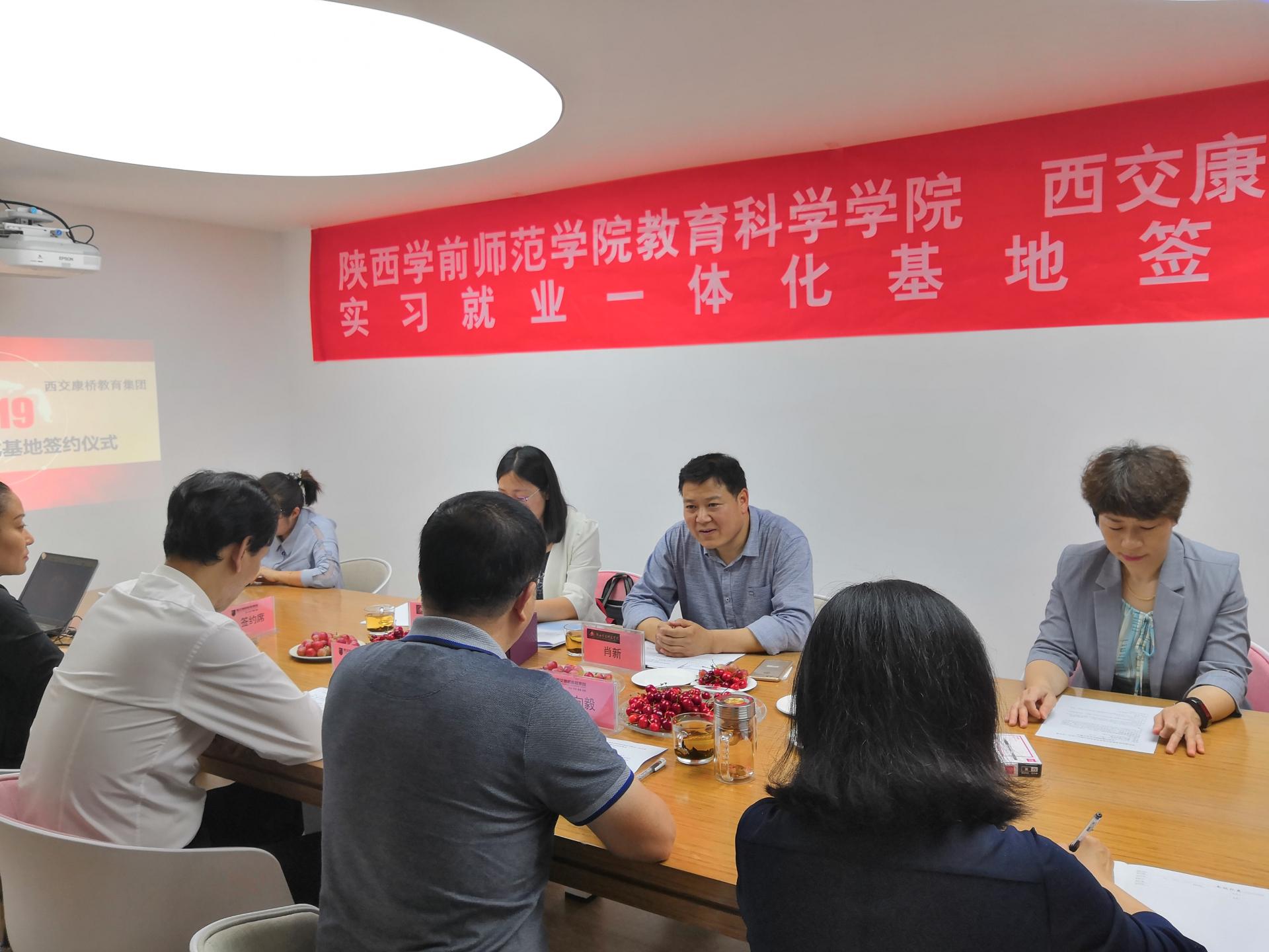 为进一步拓展我院实习基地,搭建就业平台,实现以就业为导向的实习和以实习为基础的就业相结合,经过实地考察,积极协商,本着“相互协作、互惠互利、共建双赢”的原则,我院决定与西交康桥教育集团签约共建“实习就业一体化”基地。经过周密筹备,签约暨揭牌仪式在教育集团总部举行,我院肖新书记、吕银芳副院长代表学院出席仪式,受到集团李振总经理、雷秦副总经理及该集团教育研究院常向毅副院长等热情接待。